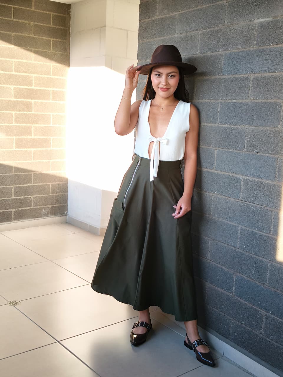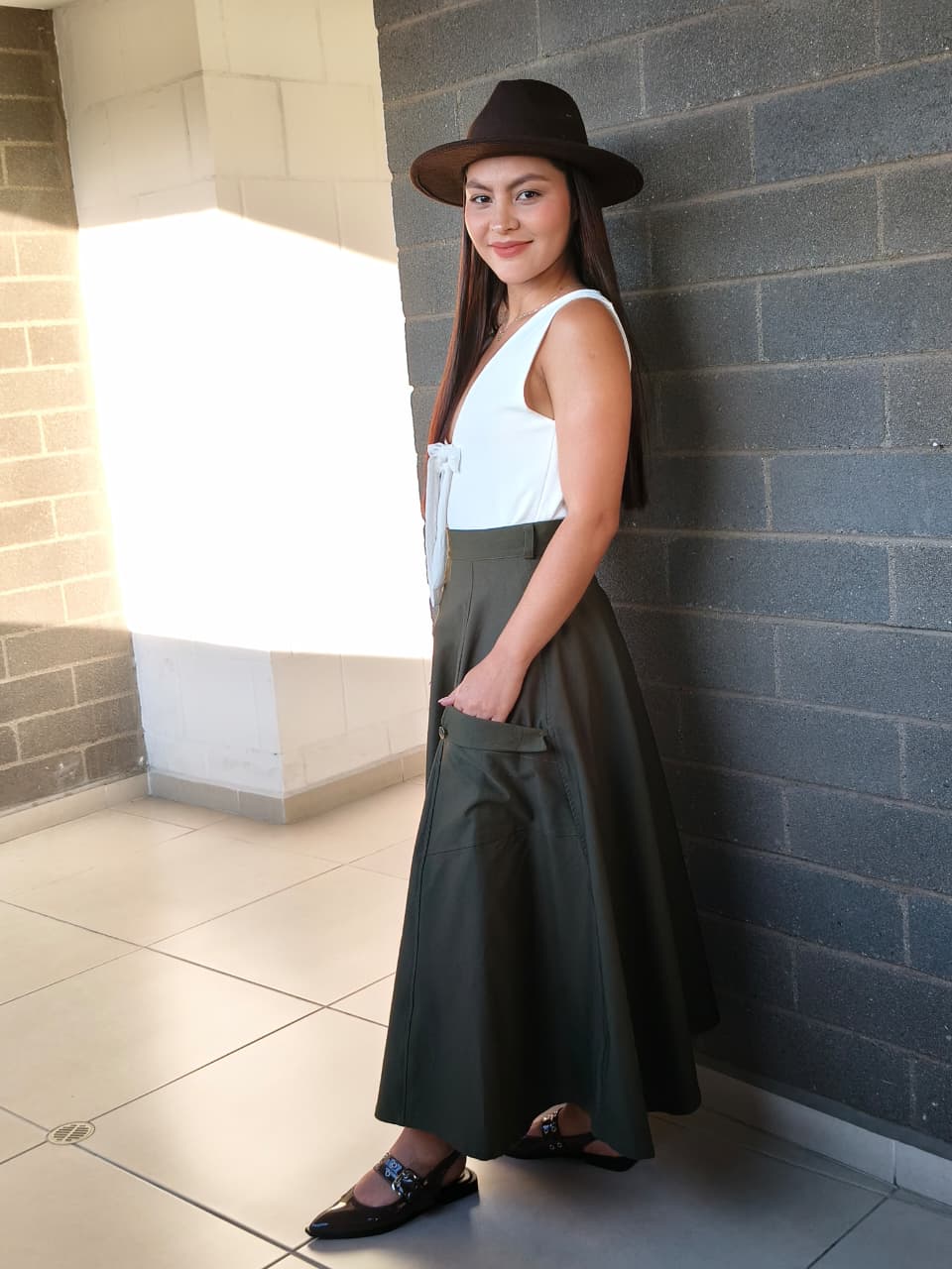 Falda estilo midi con cierre lateral y bolsillos laterales, perfecta para cualquier ocasión. Su diseño versátil combina elegancia y funcionalidad, adaptándose a distintos estilos.